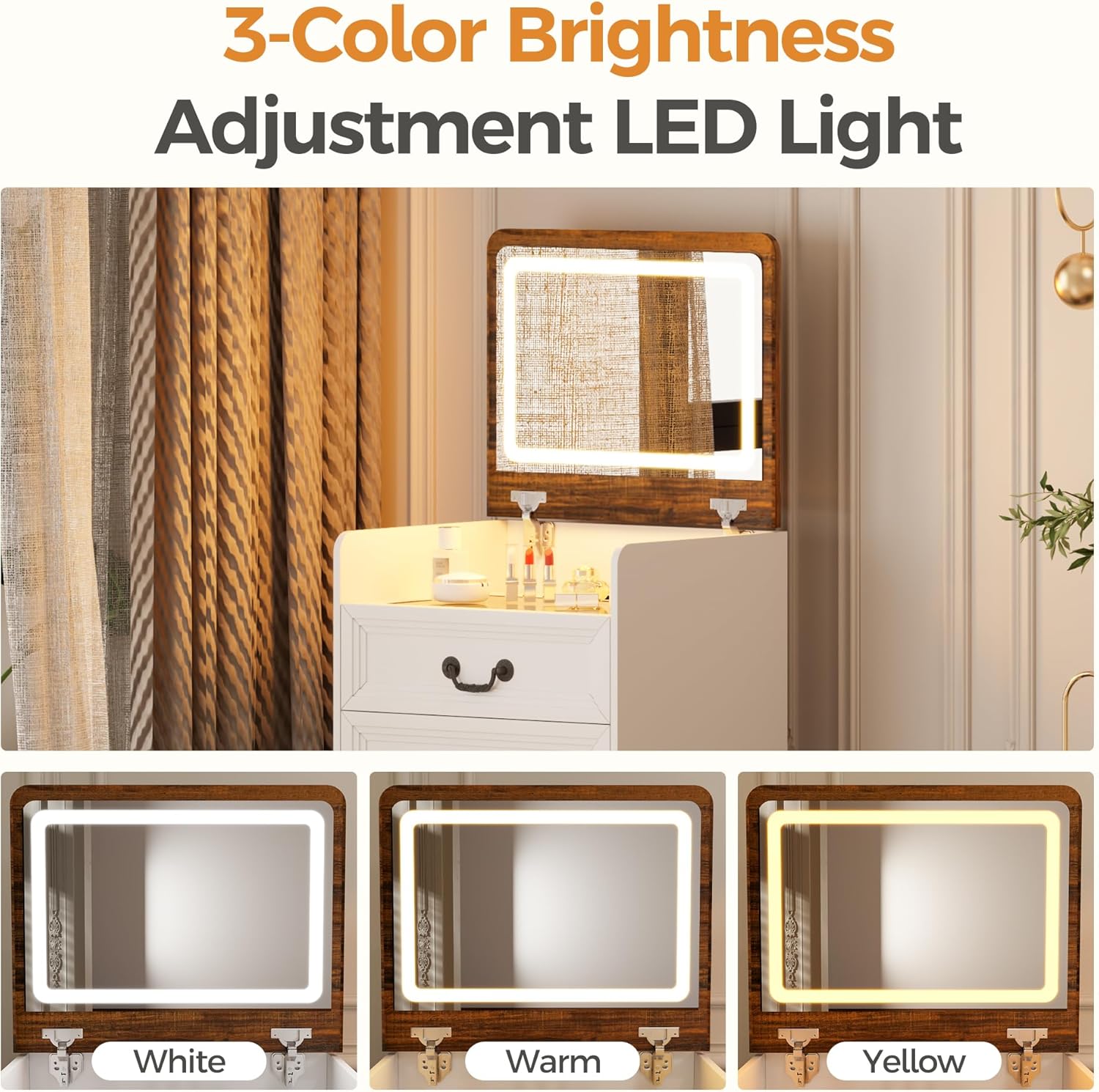 Master your look under any condition. The dimmable LED mirror offers three distinct color modes with adjustable brightness, ensuring flawless makeup application from sunrise to sunset.