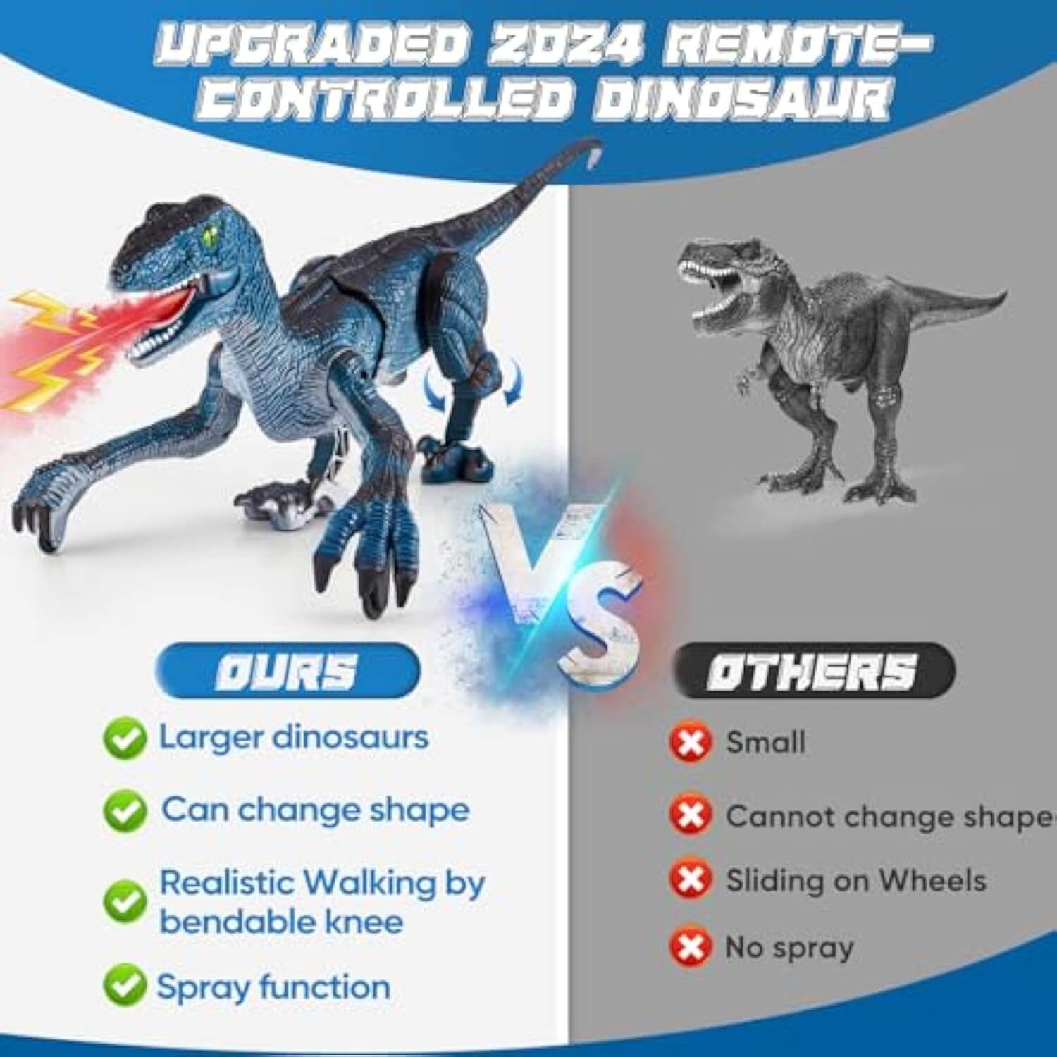 - Realistic Mist Spray: Just add water! The dino breathes a safe, cool mist illuminated by a red light to simulate breathing fire.
